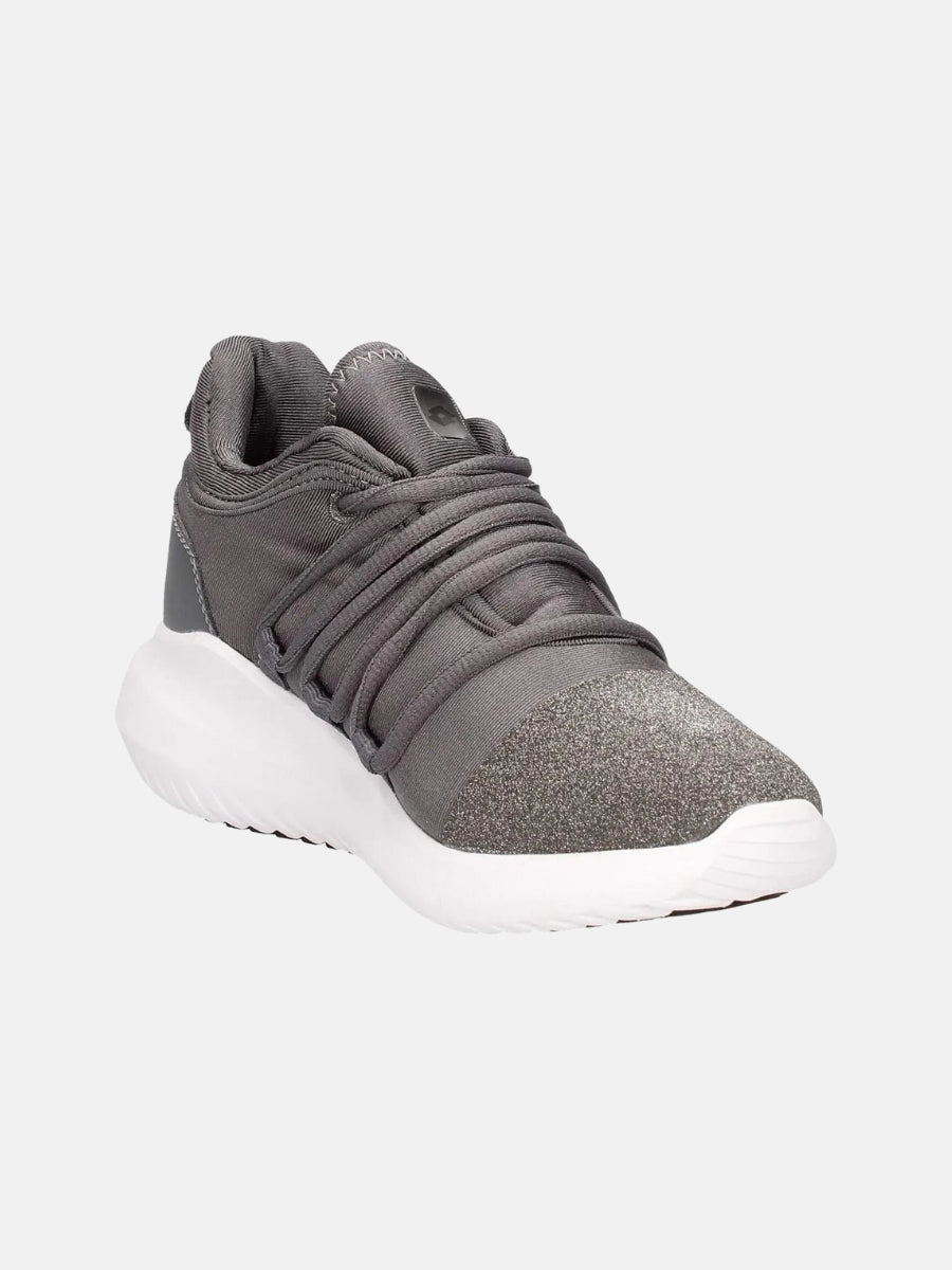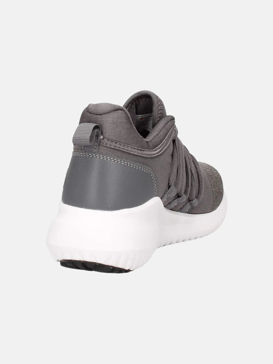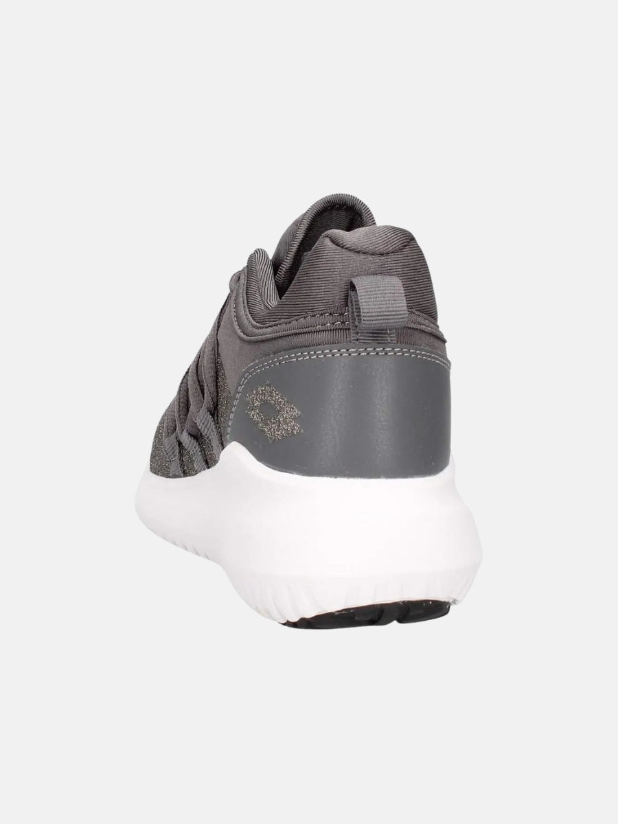 Entrena con estilo y ligereza. Estas zapatillas grises destacan por su diseño brillante, elástico y sin costuras, que se ajusta como un calcetín. La suela blanca gruesa ofrece buena amortiguación, mientras que el upper con destellos añade un toque elegante. Comodidad deportiva con acabado sofisticado.
