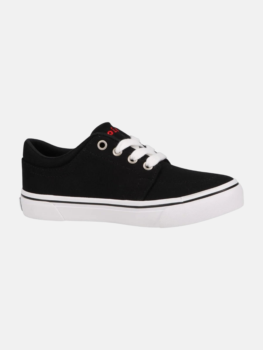 Estilo casual con sello de distinción. Estas zapatillas bajas en lona negra destacan por su diseño limpio y el icónico logo bordado en rojo. La suela blanca de goma añade contraste y comodidad, perfecta para el uso diario. Un básico con elegancia atemporal para cualquier ocasión.